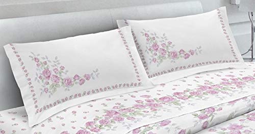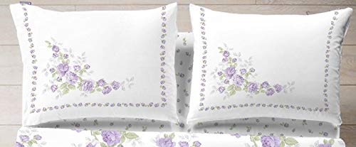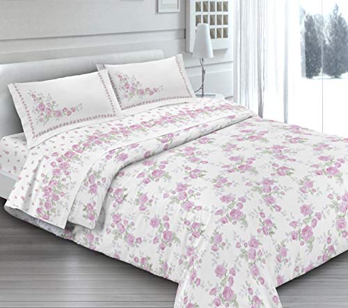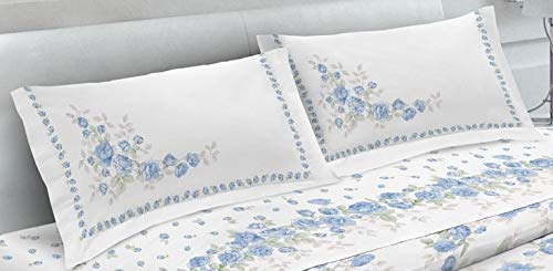 SpazioTessile Completo Lenzuola o Federe 100% Cotone Fiori Fiorato Cloe Rosa Lilla Azzurro at (Azzurro, Matrimoniale)
