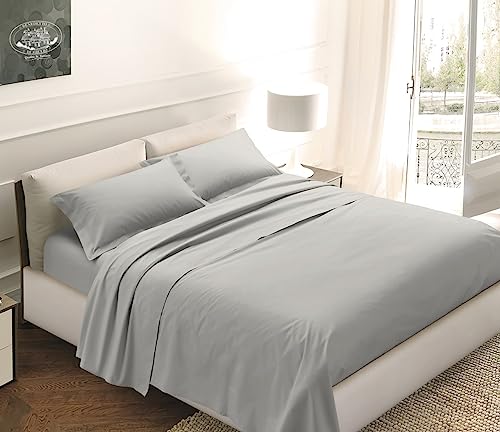 SpazioTessile Parure Lenzuola di Finissimo Puro Cotone Percalle con Federe 3 Volà (Francese, Grigio)