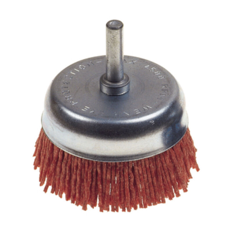 Art. 497.25 fili in nylon abrasivi. Per pulire, togliere ruggine e lucidare legno e metallo. Gambo 6 mm. Diametro 50 mm. Grana 80.