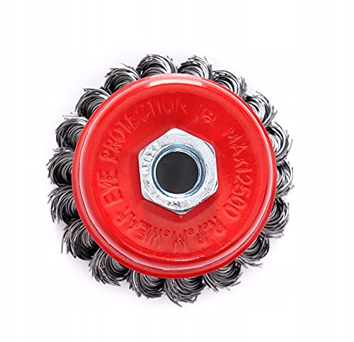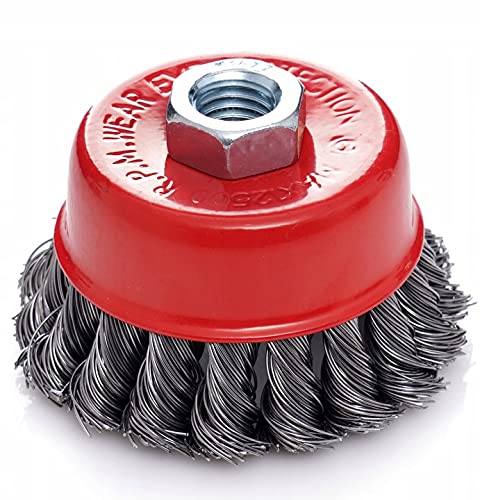 2x Spazzola abrasiva a tazza in filo d'acciaio da 75mm per smerigliatrice angolare con filettatura M14, metallica, acciaio intrecciato