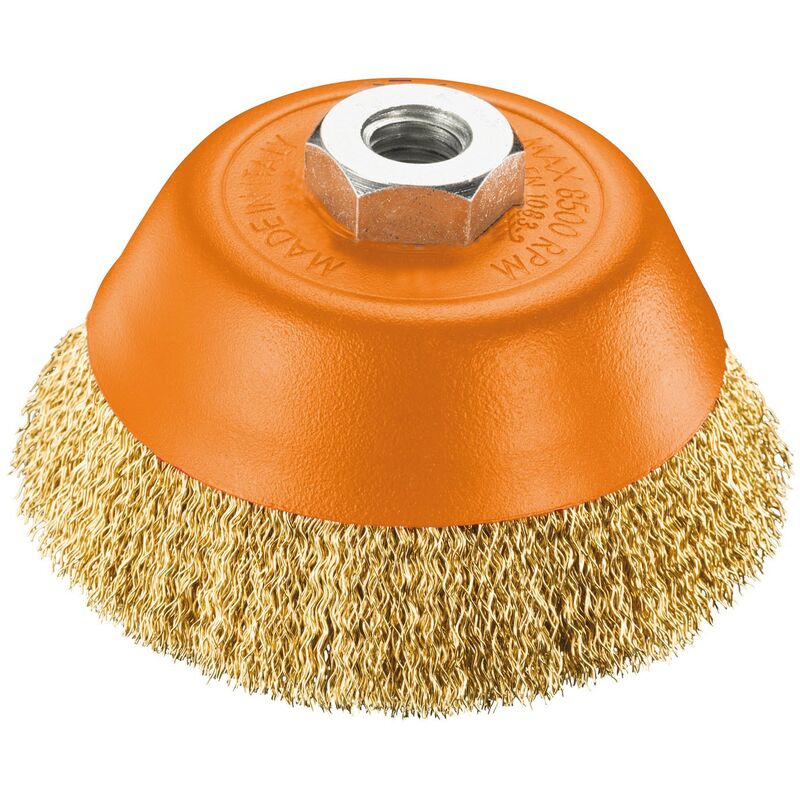In acciaio ottonato ondulato Fili Ø 0.30 mm Attacco M14 Ideale per pulire, satinare, sbavare, rimuovere ruggine e scorie, sverniciare Ø 100 mm Max 8500 Rpm