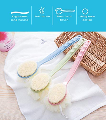 Spazzola da bagno, spazzola per il corpo, spazzola per la schiena, spazzola per la doccia, con manico lungo, setole e spugna da bagno, massaggio per la schiena, per uomini e donne, blu