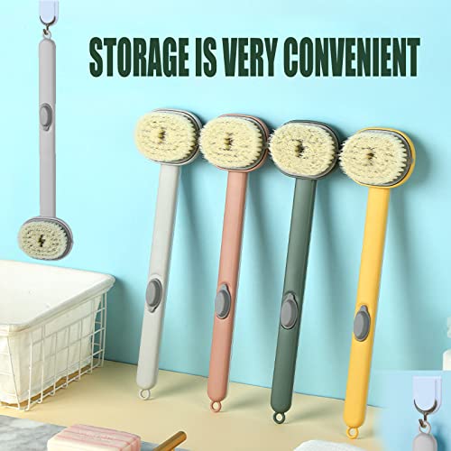 Spazzola da bagno liquida a manico lungo, spazzole lavasciuga per spugna da bagno per la schiena staccabili multifunzionali con serbatoio per gel doccia incorporato (Grigio, 1 PZ)