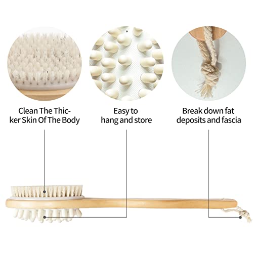 【Progettato per soddisfare le esigenze】- questa spazzola per la schiena è fatta di legno levigato liscio con setole di qualità naturale da un lato e una barra di massaggio a colonna dall'altro lato. La spazzola per il corpo è perfetta per la pulizia, l'esfoliazione, il massaggio e altre funzioni.