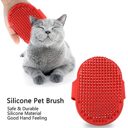 Spazzola da bagno rotonda in silicone per animali domestici Pettine in gomma per massaggio per animali domestici con manico regolabile Forniture per pettini per cani a pelo Gatti(Rosso)