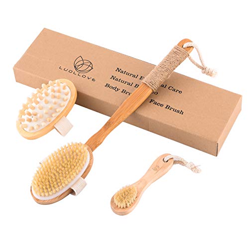 Set di 3 pezzi body brush set, compreso spazzola corpo, faccia spazzola, massaggio cellulite.