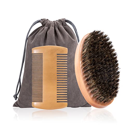 Spazzola da Barba e Pettine da Barba Kit per Uomo Pettine in Legno Spazzola con Setole di Cinghiale con Custodia per Quotidiano Viaggio3Pcs