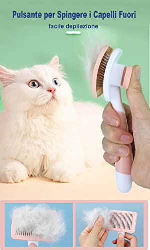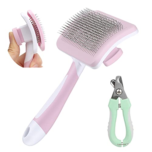 Spazzola per Cani e Gatti, Spazzola Autopulente per Cani e Gatti, Spazzola per Toelettatura per Gatti a Pelo Corto/Lungo, Rimuovi Peli Sciolti e Annodati, Spazzola Autopulente (Pettine rosa + forbici)
