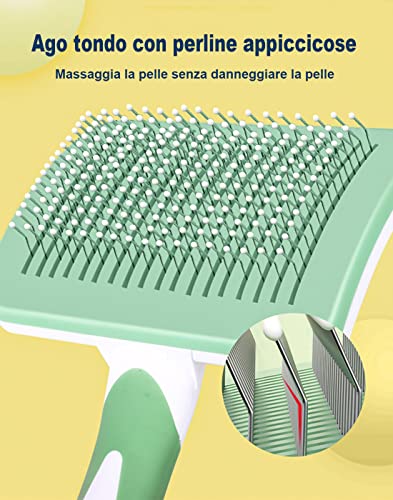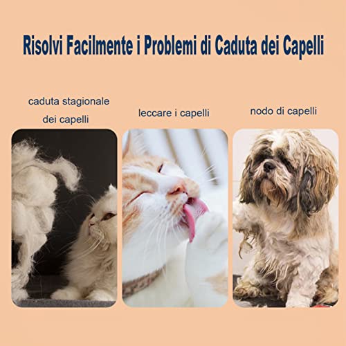 SPAZZOLA AGGIORNATA: la spazzola per cani/gatti è dotata di un'impugnatura in gomma resistente e antiscivolo per un controllo più facile e un maggiore comfort durante l'uso per rimuovere peli morti, nodi profondi e "palle d'erba". Questa spazzola per cani e gatti è realizzata con materiali ecologici ABS e TPR, che non provocano allergie cutanee. Perfetto durante i cambi di capelli.