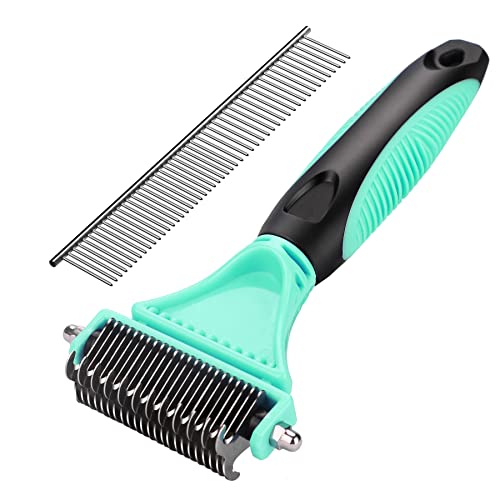 Spazzola per Cani, Pettine Cani e Gatti Riduce la Caduta dei Capelli con 23+12 Denti a Doppia Faccia, Rimuove i Peli Aggrovigliati, Peli Morti, Mats ed Nodi per Cani con Pelo Corto o Lungo (Ciano)