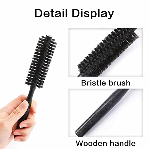 Spazzola per capelli con setole di cinghiale, 3,2 cm, piccola spazzola rotonda per asciugacapelli, con manico in legno naturale, spazzola per ricci per donne, spazzola per barba per uomini (nero)