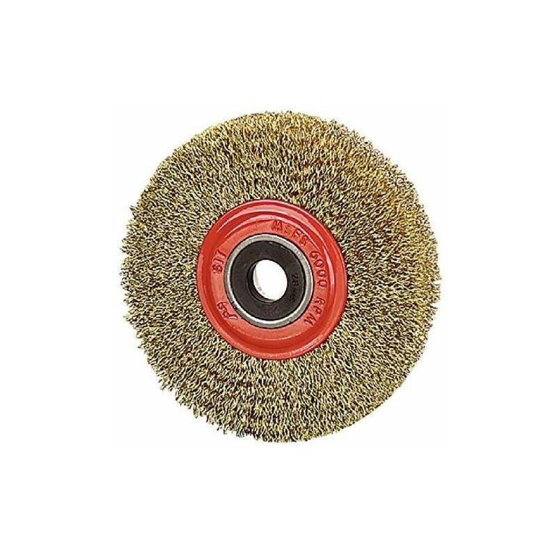 Spazzola a disco con foro mm 16/20/25 Fili acciaio ondulati mm 0,30/0,35 Diametro mm 100/125/150/200 Spessore 15/17/20/23 - Lunghezza fili 19/32/36/44 Adatta per sbavatura, satinatura e lucidatura