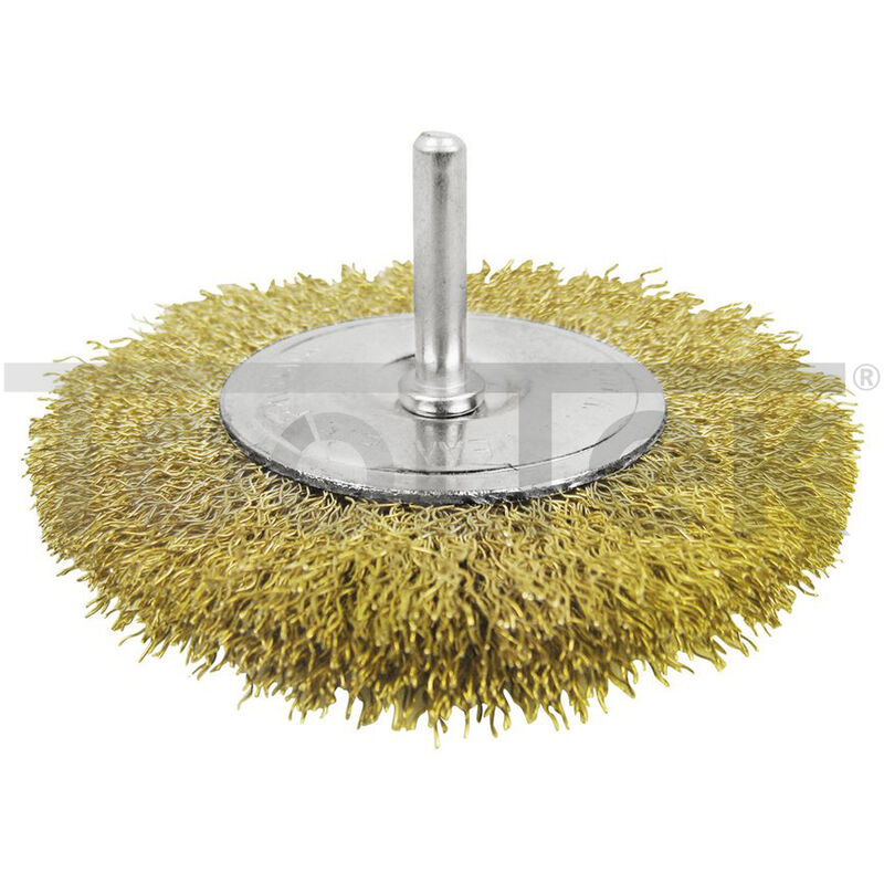 Spazzola a Disco 50mm Ottone TOTAL CARATERISTCHE: Attacco 1/4 Diametro spazzola: 50mm Diametro del filo: 0,35 mm Diametro gambo: 6,35mm (1/4) Filo ottone Prodotto di qualità