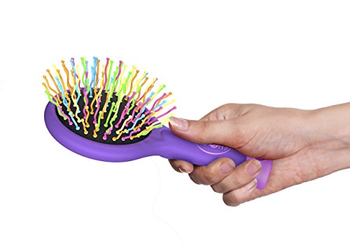 Spazzola districante con specchio - Basta nodi e dolore - setole morbide antistatiche - spazzola districante massaggiante e allisciante - manico in gomma - coloratissima - capelli bagnati e asciutti - per tutti i tipi di capelli (viola)