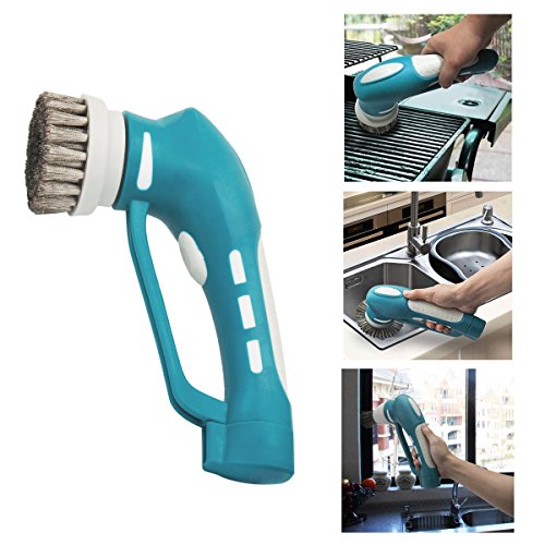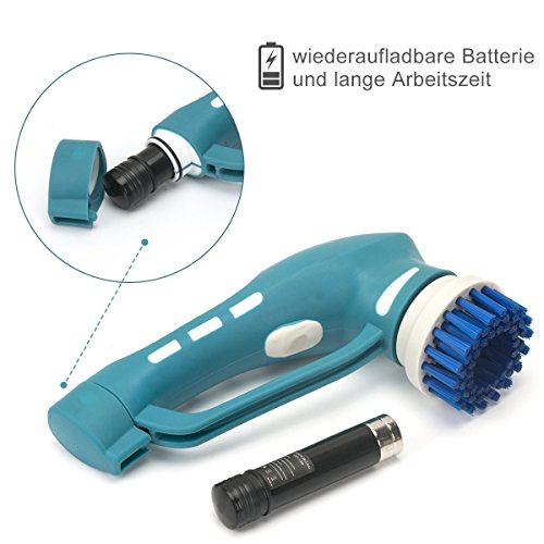 Spazzola Elettrica, Energia elettrica portatile Scrubber per pulire le macchie ostinate, fango o olio in cucina e bagno, con 8 accessori intercambiabili multifunzionale pennelli, blu