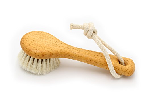 Spazzola facciale, 128 mm, di legno di faggio, oleato, morbido pelo di capra con cordino in cotone