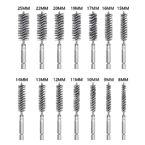 Spazzola metallica in acciaio inox, 14 pezzi, spazzola cilindrica con asta esagonale, spazzola per foratura, spazzola per tubi del forno, spazzola per caldaia, spazzola in acciaio per lucidatura,