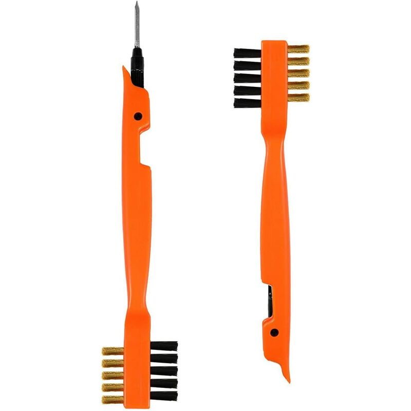 Lo sporco ostinato non può essere rimosso? Dai un'occhiata a questa versatile spazzola metallica, la nostra testina ha 2 diverse superfici della spazzola in ottone e nylon, oltre a un robusto raschietto e un ago affilato in acciaio antiruggine che rimuove perfettamente lo sporco ostinato, Ti dà un oggetto molto pulito dopo la pulizia Sei ancora a disagio quando lo tieni per mano? Questa spazzola metallica ha un manico in materiale plastico di alta qualità per garantire una lunga durata e un design ergonomico molto intuitivo che ti consente di tenere comodamente in mano gli oggetti che desideri pulire. È complicato da installare e trasportare? No! questa è una spazzola metallica molto portatile e adatta alle famiglie per la pulizia e la rimozione della ruggine. Può essere riposto nella tua piccola borsa degli attrezzi, cassetto, borsa e altri piccoli oggetti. Occupa pochissimo spazio e il foro per appenderlo ti consente di appendere ovunque si adatti alle dimensioni del foro. È
