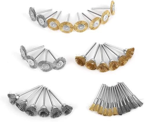 Spazzola metallica, Set di 36 pennelli in filo rivestito in ottone con penna piatta per lucidatura rotelle utensili rotanti