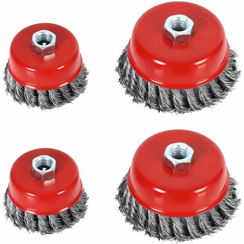 Tutto quello che devi fare è rimuovere la piastra di pressione dalla smerigliatrice angolare, allineare la spazzola metallica con il foro filettato, far scorrere il mandrino, bloccare la spazzola metallica in posizione e serrare. Tipo annodato: il filo la spazzola ne adotta una annodata a spirale Struttura in filo, molto adatta per la pulizia di superfici strette e in grado di pulire bene ogni angolo. Adatto per smerigliatrici angolari con filettatura M14. Applicazione: questo set di spazzole per la pulizia dei metalli è ideale per rimuovere vernice e ruggine, pulire i cordoni di saldatura, sfumare