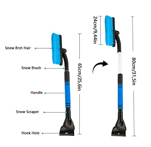 ⛅ 【Materiali di alta qualità】 Il dispositivo di rimozione del ghiaccio del parabrezza è costituito da un albero in ABS ad alta resistenza, setole in PC e un manico in cotone EVA. Il raschietto da neve 2 in 1 può essere retrattile, la lunghezza più corta è di circa 65 cm e la lunghezza più lunga di circa 80 cm. La testina di circa 24 cm si sposta rapidamente sul parabrezza per rimuovere facilmente la neve.