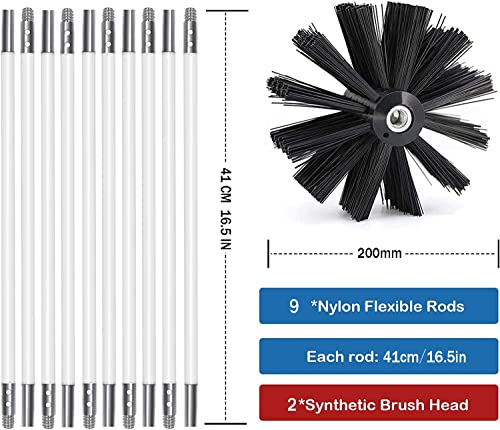 Spazzola Pulizia Camino, 200mm Diametro Spazzole Camino, Scovolo Pulizia Canna Fumaria con 9 Aste in Nylon da 410 mm e 2 Testine da 200mm Diametro per La Pulizia del Camino