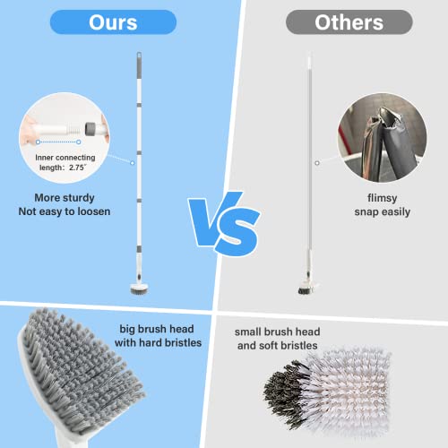 【3 in 1 Spazzola di pulizia Bagno】Si ottiene una canna lunga rimovibile e 3 teste di pulizia bagno sostituibili (1 spazzola a setole rigide, 1 tampone scrubber e 1 spazzola giunto a forma di V) in questo kit. 3 teste di pulizia intercambiabili sono aggiornate a dimensioni più grandi per coprire più aree contemporaneamente, consentendo di pulire piastrelle, vasche da bagno, lavelli, vetro, servizi igienici, tappeti, pavimenti e battiscopa ecc. facile da pulire.