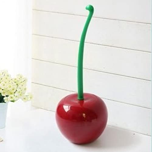 Spazzola per La Pulizia Della Tazza Del Wc, Set di Scopino per Wc Flessibile e Denso in Materiale Pp, Scopino e Supporto per Wc Dal Design Unico in Stile Ciliegia con Base, Manico Lungo(Setole Rosse)