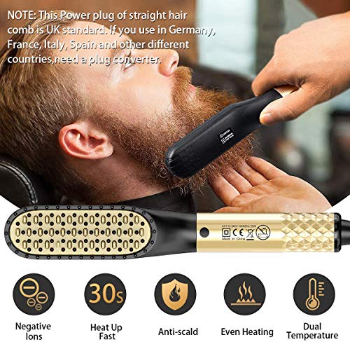 【SPAZZOLA DRITTA MULTIFUNZIONE】 Progettata per barba, capelli corti e capelli lunghi, sia uomini che donne. Ti aiuta a cancellare l'effetto crespo, il nodo, le doppie punte e dà ai tuoi capelli / barba un aspetto liscio, liscio e brillante.NOTA: questa spina di alimentazione del pettine per capelli lisci è standard nel Regno Unito. Se si utilizza in Germania, Francia, Italia, Spagna e altri paesi, è necessario un convertitore di spina.