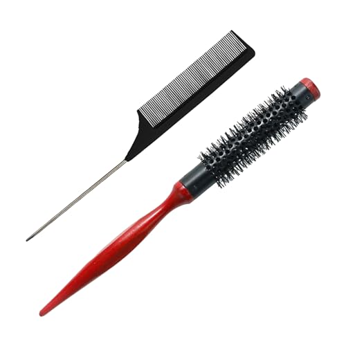 1 spazzola rotonda per capelli con 1 pettine per raddrizzare la coda, mini spazzola per lo styling dei capelli, spazzola rotonda per uomini e donne, spazzola per capelli in nylon per styling, ricci,