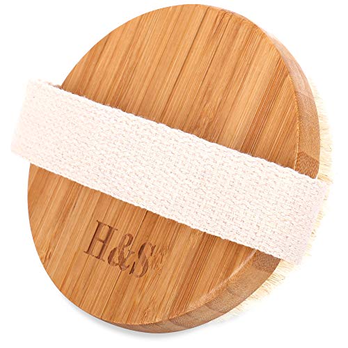 H&S Spazzola Rotonda Esfoliante Anticellulite - 2 Spazzole da Doccia e Bagno o per Spazzolatura a Secco - Massaggiatore con Setole Naturali per Gambe Schiena e Corpo