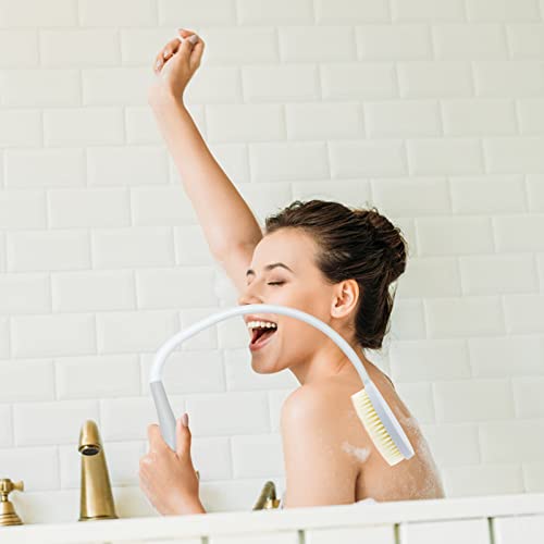 Spazzola Schiena Doccia Curva, Spazzola Doccia con Manico Lungo, Spazzola Esfoliante Corpo a Setole Morbide, Spazzola Corpo a Secco Setole Naturali per Anziani Donne