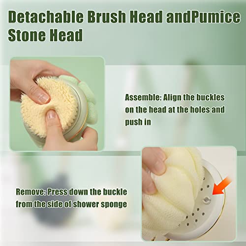 【Cosa Otterrai】 1x Spugna Doccia con Manico Lungo, 1x Testa Staccabile della Spazzola Doccia, 1x Testa Staccabile di Pietra Pomice.