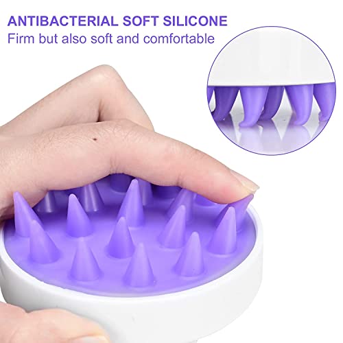 Spazzola per shampoo per capelli Podazz Cura del cuoio capelluto per capelli bagnati e asciutti Spazzola per cuoio capelluto con massaggiatore per la testa in silicone morbido (Viola bianco)
