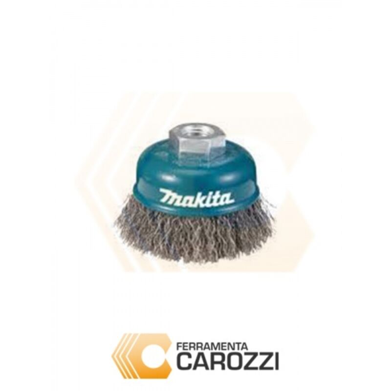 Spazzola a tazza Makita con filo d'acciaio avvolto per smerigliatrici on attacco M14.Ideale per uso su acciaio dolce. Lo store online offre una vasta scelta di spazzole a tazza con filo d'acciaio che si differenziano per diametro, spessore del filo e velocità massima di lavoro.1 pezzo per confezione Pezzi per confezione: 1 tipologia attacco: M14