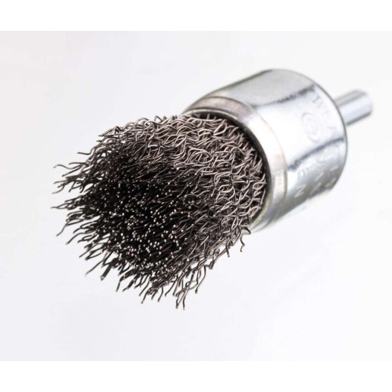 Per trapani. Ideale per la rimozione di ruggine superficiale e pulizia di mattoni. Fili in acciaio ondulato, codolo 6 mm. mm 25