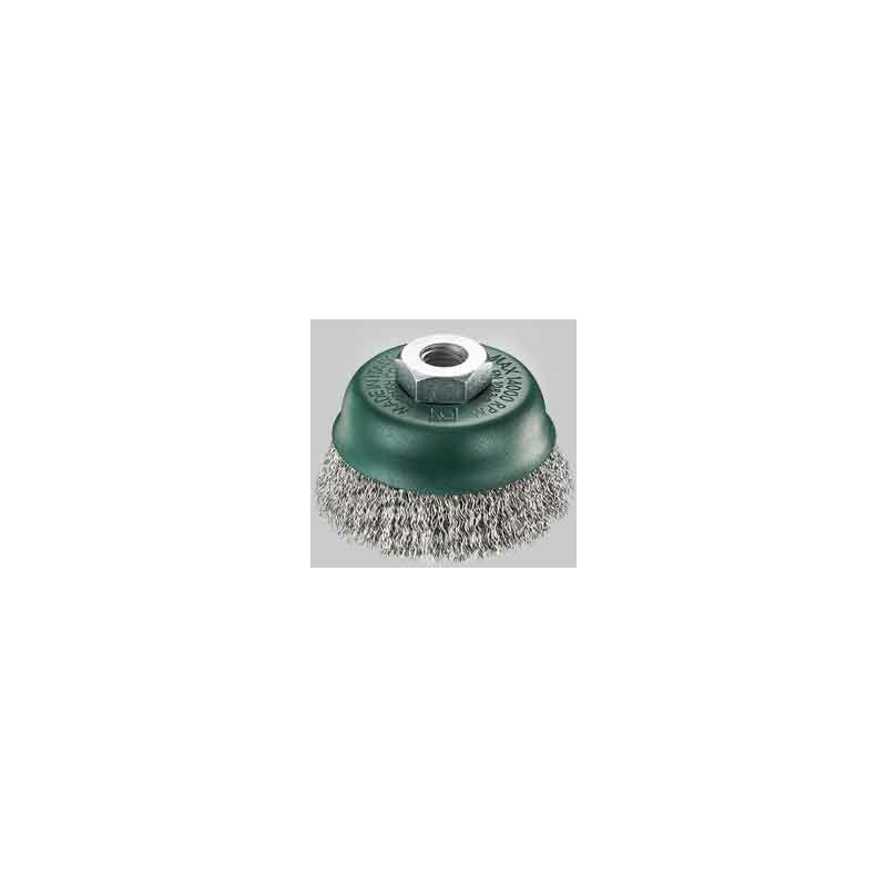 Filamenti in acciaio inox. Foro M14. Per utilizzo su smerigliatrici portatili, sia elettriche sia ad aria compressa, per lavori di pulitura, satinatura, finitura, rimozione di scorie.