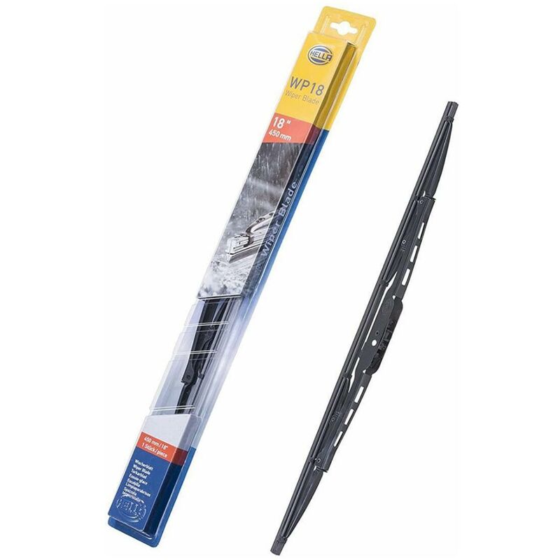 Spazzola tergicristalli 22° 550 mm, telaio in acciaio e la lama in gomma. Nella confezione sono presenti 3 adattatori per l'atta