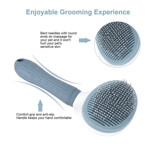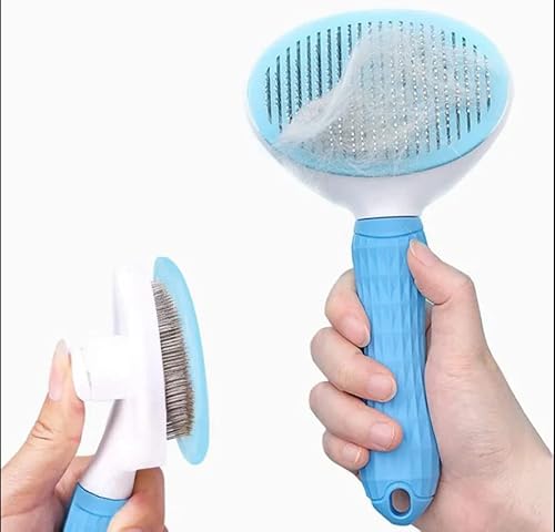 Spazzola Togli Peli Universale Morbida Cani Gatti Animali Domestici Tasto Autopulente Toelettatura Massaggio Effetto Benessere Togliere Peli Eccesso sotto Pelo Corto Lungo Setole Pallini Gomma (BLU)