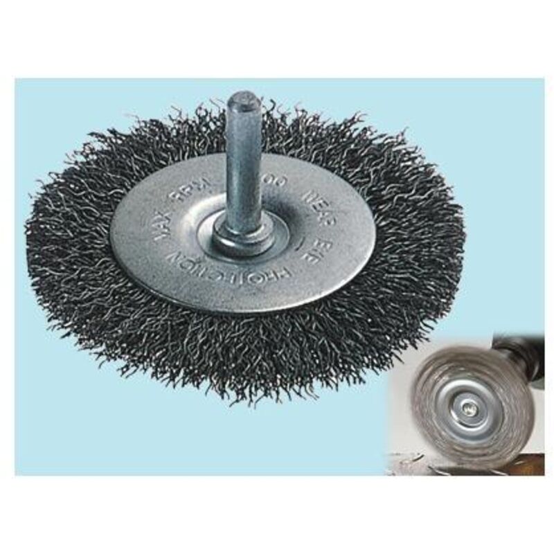 Spazzole in filo ondulato di acciaio, codolo 6 mm., per trapani. Per togliere la ruggine e pulire, per la preparazione di lavori di saldatura e brasatura, per metalli, pietra Art. 2710000 - 50 mm.