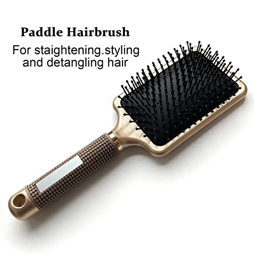 Set Spazzole per Capelli 3 Pezzi - 1x Paddle Brush Piatta 1x Spazzola a Ventaglio 1x Tonda in Ceramica - Manico Morbido - Eccellenti su Capelli Bagnati o Asciutti - Spazzole oro Tiranno Locale