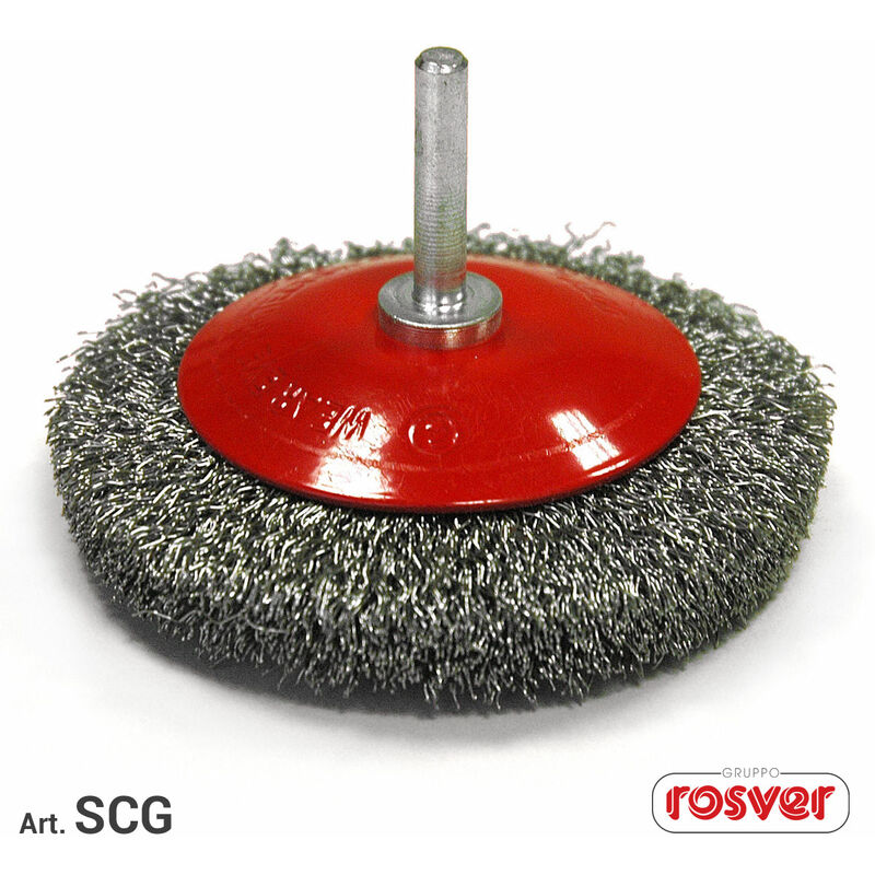 Spazzola SCG D.90 G. 6 - Conf.10pz Per pulizia di punti difficili da raggiungere di saldature, per leggere bave, sverniciature, calamine, ruggine. MISURA GAMBO INOX ACCIAIO 90 6 7,33 4,77 10