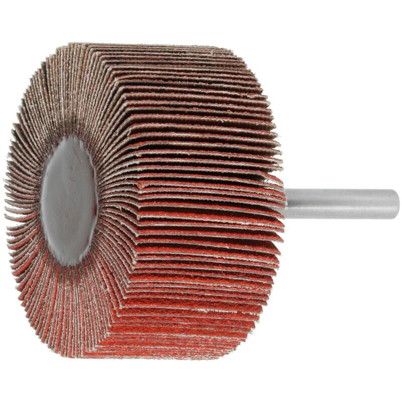 Disposizione a ventaglio delle lamelle attorno all'asse dell'utensile. Lamelle abrasive rivestite con grana ceramica (CER). Uso: Adatte per lavori di lisciatura e di lucidatura a grande raggio nella costruzione di stampi e utensili e nella realizzazione di apparecchi e contenitori. Le lamelle abrasive si adattano ai contorni del pezzo. Dati tecnici Sigla materiale abrasivo Ceramica Materiale abrasivo Grana ceramica (CER) Attributo del nome del prodotto grana 120 Acciaio < 55 HRC m/s idoneo INOX m/s idoneo Acciaio < 1400 N/mm² m/s idoneo Acciaio < 900 N/mm² m/s limitatamente adatto CuZn m/s idoneo Acciaio < 60 HRC m/s idoneo Ti m/s idoneo Alluminio, CFRP m/s idoneo GG(G) m/s idoneo Legno m/s idoneo Acciaio < 67 HRC m/s idoneo a secco idoneo Tipo di prodotto Spazzole lamellari in tessuto abrasivo con gambo ⌀ Testa, mm 50 Velocità consigliata, min-1 9.000 Numero massimo giri, min-1 15.300 Grana 120 ⌀ Gambo, mm 6 Larghezza della testa, mm 20