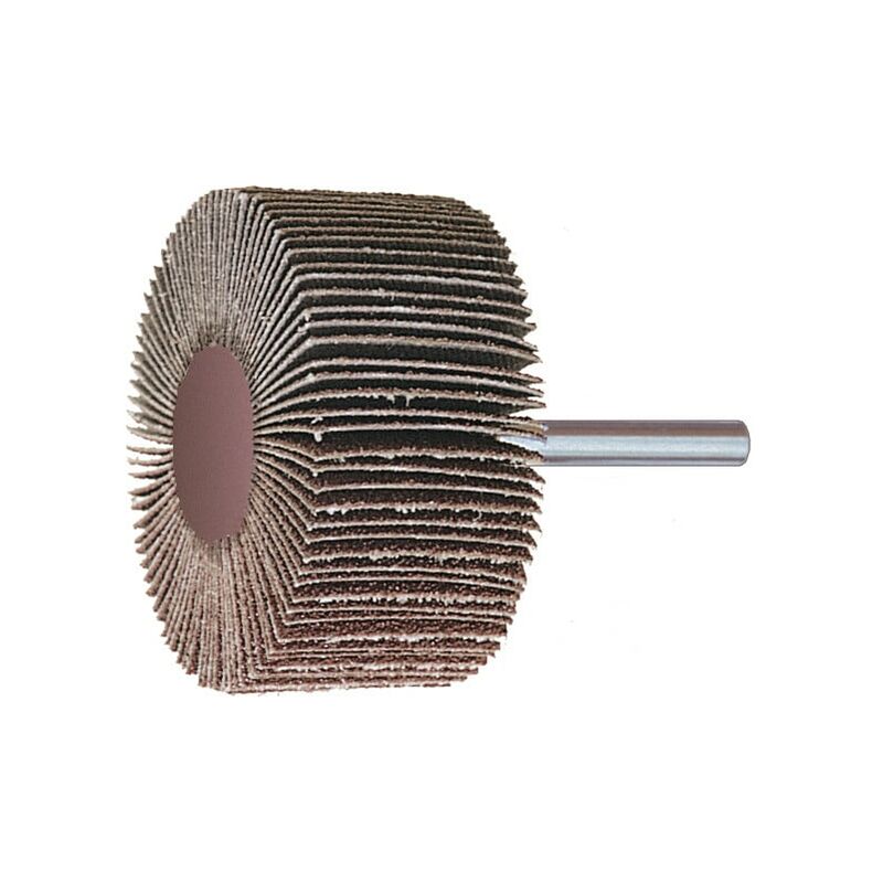 Disposizione a ventaglio delle lamelle attorno all'asse dell'utensile. Lamelle abrasive rivestite con corindone normale (A). Uso: Adatte per lavori di lisciatura e di lucidatura a grande raggio nella costruzione di stampi e utensili e nella realizzazione di apparecchi e contenitori. Le lamelle abrasive si adattano ai contorni del pezzo. Dati tecnici CuZn m/s idoneo Acciaio < 55 HRC m/s idoneo Acciaio < 900 N/mm² m/s idoneo Acciaio < 1400 N/mm² m/s limitatamente adatto a secco idoneo Alluminio, CFRP m/s idoneo GG(G) m/s limitatamente adatto Acciaio < 60 HRC m/s limitatamente adatto Legno m/s idoneo Al/Mg m/s idoneo Materiale abrasivo Grana abrasiva al corindone (A) Sigla materiale abrasivo A Attributo del nome del prodotto grana 80 Tipo di prodotto Spazzole lamellari in tessuto abrasivo con gambo ⌀ Testa, mm 60 Velocità consigliata, min-1 8.000 Numero massimo giri, min-1 8.500 Grana 80 ⌀ Gambo, mm 6 Larghezza della testa, mm 50