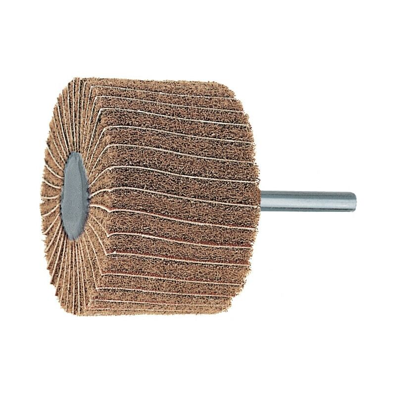 Disposizione a ventaglio delle lamelle attorno all'asse dell'utensile. La combinazione con tela abrasiva aumenta l'azione levigante del tessuto. ⌀ Codolo 6 mm. Uso: Per rimuovere impurità e strati di ossido dai metalli, nonché per opacizzare gli acciai al Cr-Ni e altri metalli legati, ma anche metalli non ferrosi. Dati tecnici Acciaio < 900 N/mm² m/s idoneo Al/Mg m/s idoneo Vernice m/s limitatamente adatto Acciaio < 55 HRC m/s idoneo Ti m/s limitatamente adatto GG(G) m/s idoneo Acciaio < 67 HRC m/s limitatamente adatto a secco idoneo Acciaio < 1400 N/mm² m/s idoneo CuZn m/s idoneo Legno m/s idoneo INOX m/s idoneo Alluminio, CFRP m/s idoneo Acciaio < 60 HRC m/s limitatamente adatto Confronto granulometrico 100 / 80 Sigla materiale abrasivo A Grado di finezza grosso Attributo del nome del prodotto grosso Tipo di prodotto Spazzole lamellari in tessuto abrasivo con gambo ⌀ Testa, mm 30 Velocità consigliata, min-1 7.500 Numero massimo giri, min-1 14.000 ⌀ Gambo, mm 6 Larghezza della
