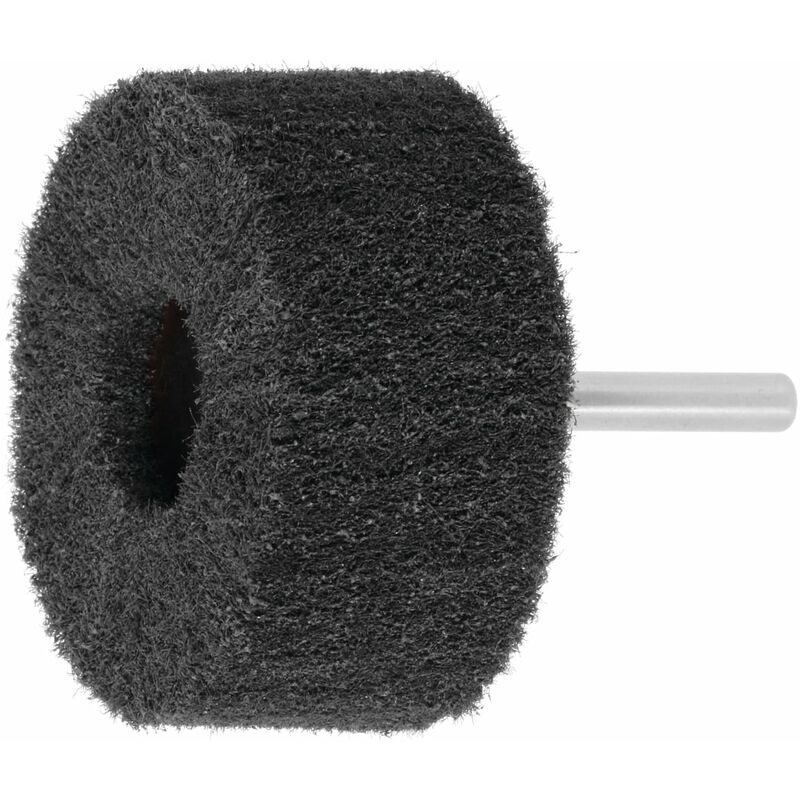 Disposizione a ventaglio delle lamelle in tessuto attorno all'asse dell'utensile. ⌀ Codolo 6 mm. La grana appuntita in carburo di silicio (SiC) garantisce una capacità di abrasione aggressiva e una finitura leggermente lucida. Uso: Per rimuovere impurità e strati di ossido dai metalli, nonché per opacizzare gli acciai al Cr-Ni e altri acciai legati, ma anche metalli non ferrosi. Dati tecnici Grado di finezza fine Sigla materiale abrasivo SiC Attributo del nome del prodotto fine Confronto granulometrico 280 Materiale abrasivo Carburo di silicio Acciaio < 1400 N/mm² m/s idoneo Pietra m/s limitatamente adatto Alluminio, CFRP m/s idoneo a secco idoneo Acciaio < 55 HRC m/s idoneo INOX m/s idoneo CuZn m/s idoneo Al/Mg m/s idoneo GG(G) m/s idoneo Ti m/s idoneo Acciaio < 67 HRC m/s limitatamente adatto Acciaio < 60 HRC m/s idoneo Vernice m/s limitatamente adatto Tipo di prodotto Spazzole lamellari in tessuto abrasivo con gambo ⌀ Testa, mm 80 Velocità consigliata, min-1 4.000 Numero massimo