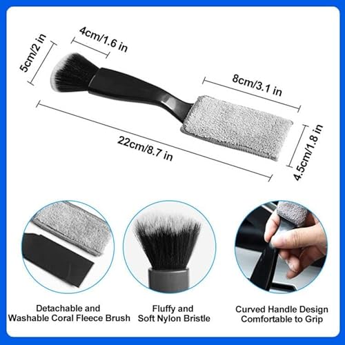 Qualità spazzola per pulizia interni auto: Il manico del pennelli pulizia auto interni è realizzato in ABS, leggero e resistente. Una testa della pulizia plastiche auto interne è realizzata in pile di corallo, staccabile e lavabile, può essere utilizzata bagnata o asciutta. L'altro lato è realizzato in setola di nylon, soffice e morbida, facile da pulire la polverosa senza usura e graffi.