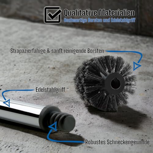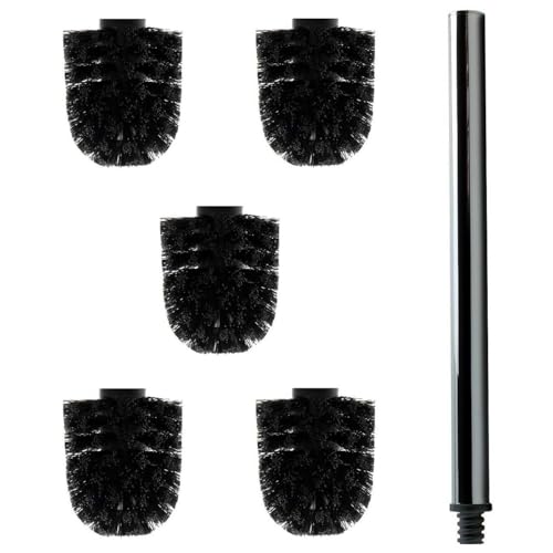 5 spazzole di ricambio per scopino per WC, colore nero, con manico da 26 cm