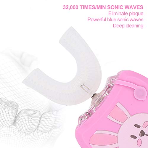 Spazzolini da denti automatici a forma di U, spazzolini elettrici per bambini comodi da caricare spazzolino da denti sbiancante tipo U, per(Pink Bunny 3-7 years old)