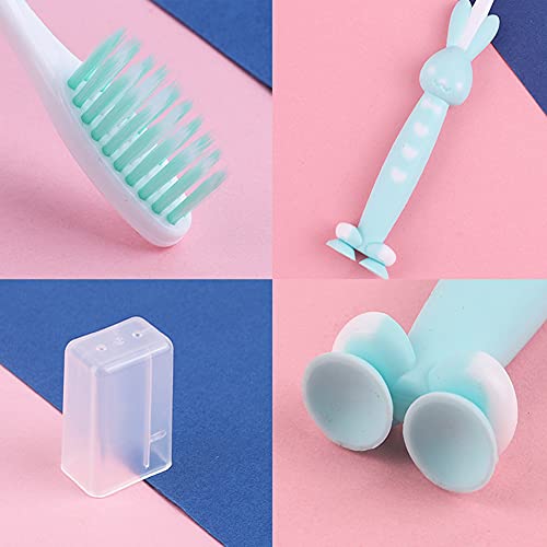 4 spazzolini da denti per bambini coniglietto dei cartoni animati, spazzolini da denti morbidi per bambini con spazzole in setole morbide, quattro colori (giallo, blu, rosa, verde)